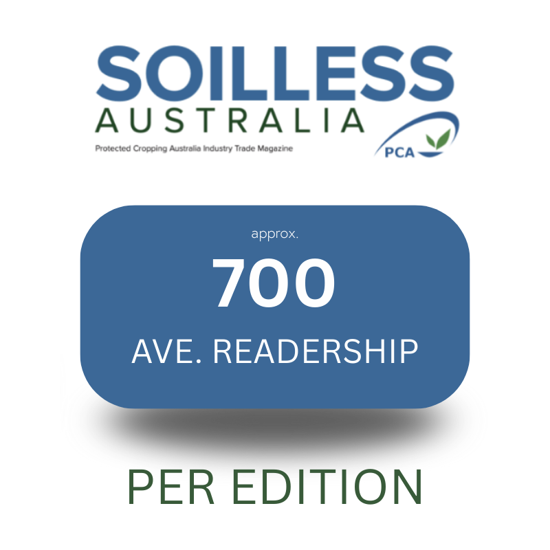 PCA’s flagship publication, Soilless Australia, is a quarterly magazine publication, with an edition going out at the start of each season – Autumn, Winter, Spring, and Summer. Produced both as a high-quality print publication, and shared with members online, this publication has a long shelf life and wide readership reach, making it ideal for brand awareness building. Each edition goes out to members across Australia, and internationally.